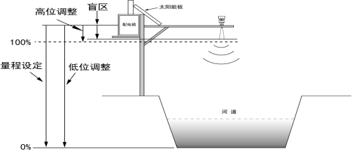 注:使用雷達(dá)物位計(jì)時,務(wù)必保證最高水位不能進(jìn)入測量盲區(qū)。